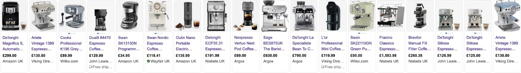 For pages discussing a single product, such as product reviews, we can list multiple instances of that specific product, along with its price, from multiple stores, providing the user with a really useful price comparison tool.